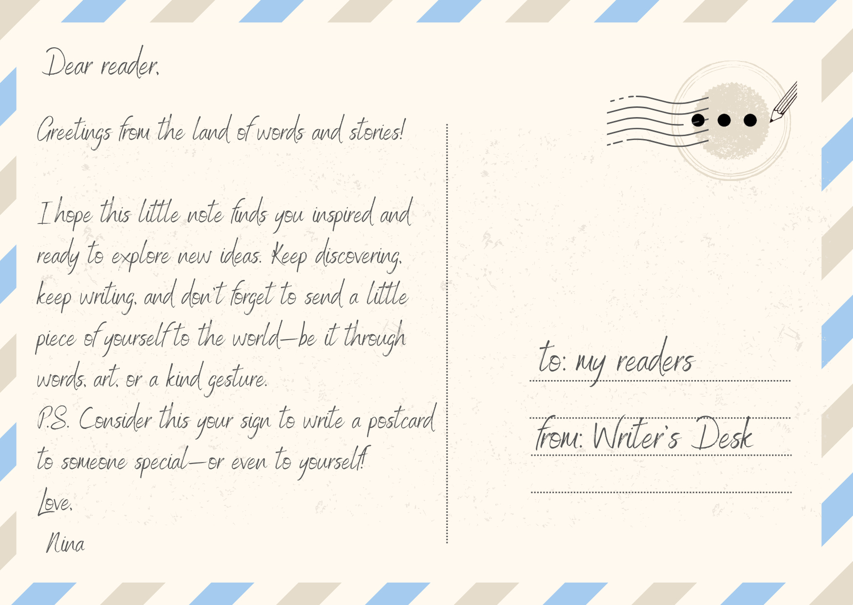 Also, keep in mind that a postcard isn’t entirely private. You’re writing for both the recipient and the curious postal workers who might glance at it along the way. This forces you to be intentional—not just about what you say, but how you say it. It's a unique balance of creativity, thoughtfulness, and restraint, all within the confines of a small rectangle.